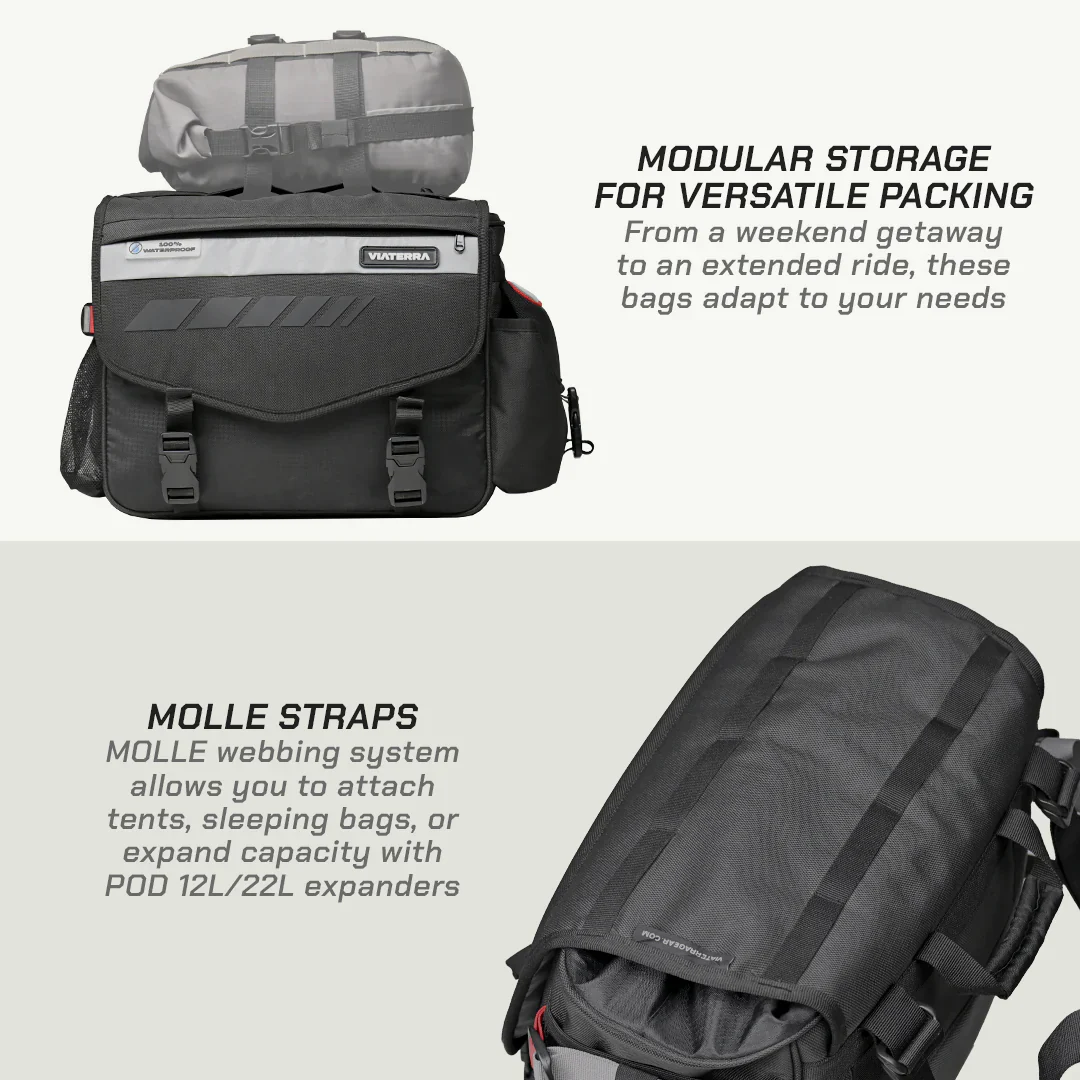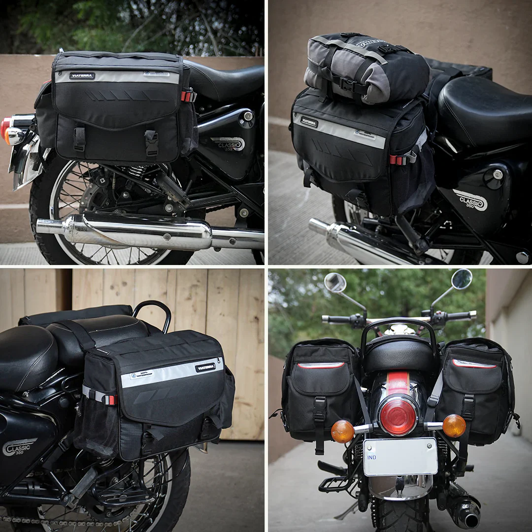 – Two straps loop through the rear footpeg stays (to secure the bag in place)