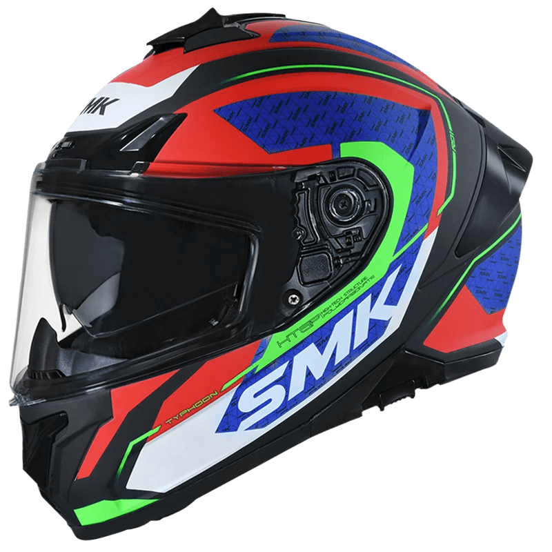 TYPHOON RD1 is a Full-face helmet with a compact and aerodynamic shell design that appeals to sports tourers and daily commuters. The Typhoon range of helmets from SMK comes with industry-leading safety and comfort features. Enhanced with amazing graphics and solid colors, it gives you the option to pick one that matches your lifestyle!