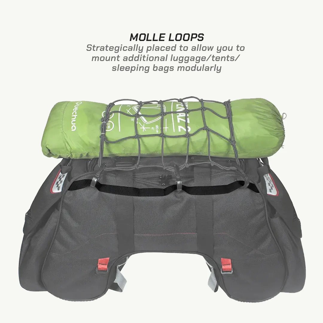 A versatile touring essential built for long hauls, the Claw Tailbag balances capacity, durability, and ease of use. With a massive 72L space, it’s perfect for 2 to 3 week trips, no rack required. Its universal fit, smart compression system, and modular add-on options make it a reliable pick for riders who pack smart and ride far.