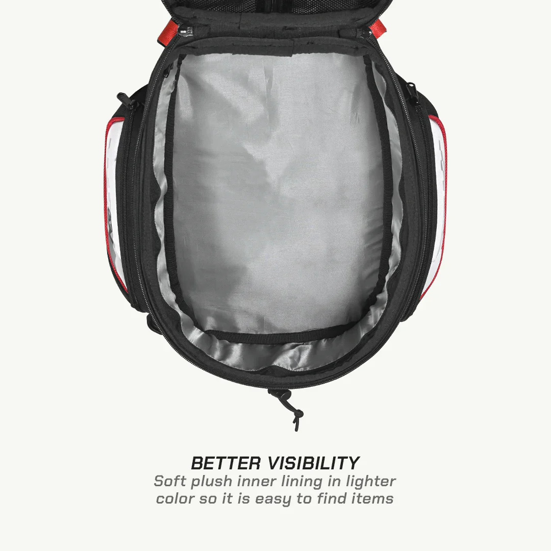 Built for everyday riders and quick getaways, the Fly Magnetic Tank Bag blends convenience with a clean, no-strap setup. Designed using EVA-laminated fabric with PP reinforcement, it holds its shape and stays stable even at high speeds. The strong magnetic base offers fuss-free mounting on metal tanks, while the rain-ready touchscreen-compatible navigation pocket and easy conversion to a backpack make it perfect for both city rides and weekend runs.